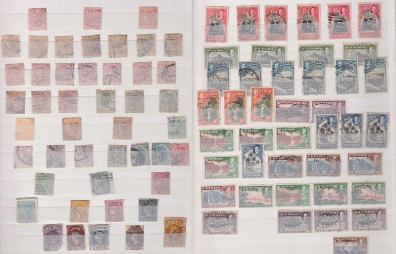 Ceylon & Sri Lanka c1870-c1990 colln, dupn & mixed cond (especially QV), in L/H s/b with various blocks of 4 & singles. Approx 1500v incl some postal stationery cut outs. Mint/MUH/used. (Image)
