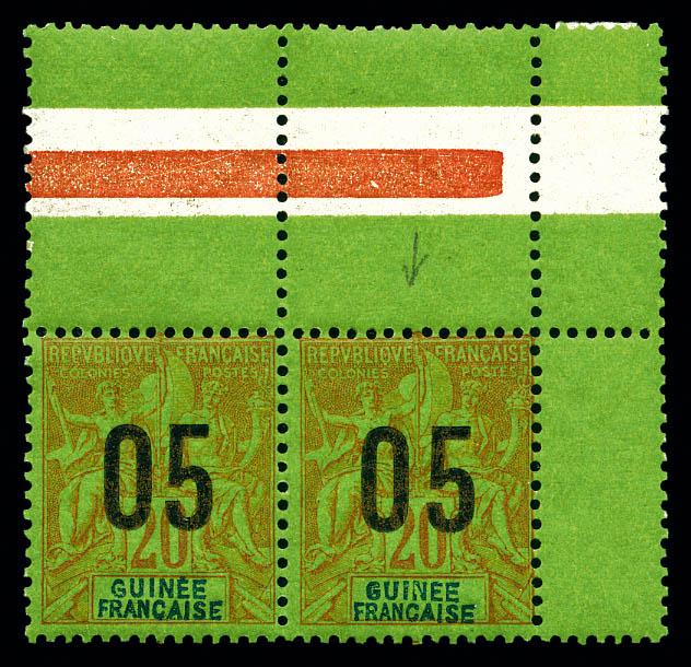 N°51Aa, 05 sur 20c: surcharge espacée tenant à normale en paire cdf. SUP (certificat) Qualité: ** Cote: 572 euros (Image)