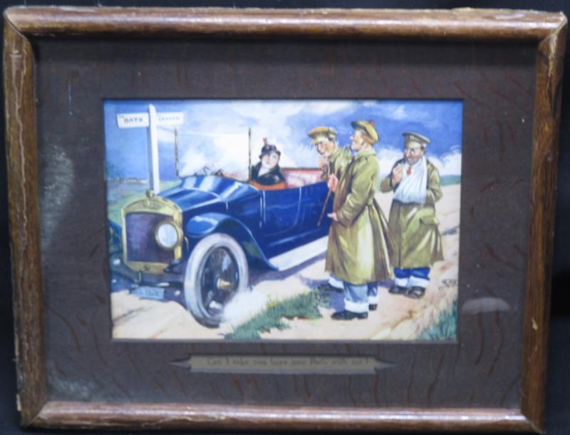 Comics & postcards group including WW1 humorous saucy print 'Can I Take you boys into Bath with me?'; 'The Beano' comics (65); original cartoon drawings (2) in the style of Saltbush Bill; also range of postcards (43) including military uniforms (20) & Queen Elizabeth (5), mainly Fair/Fine condition.