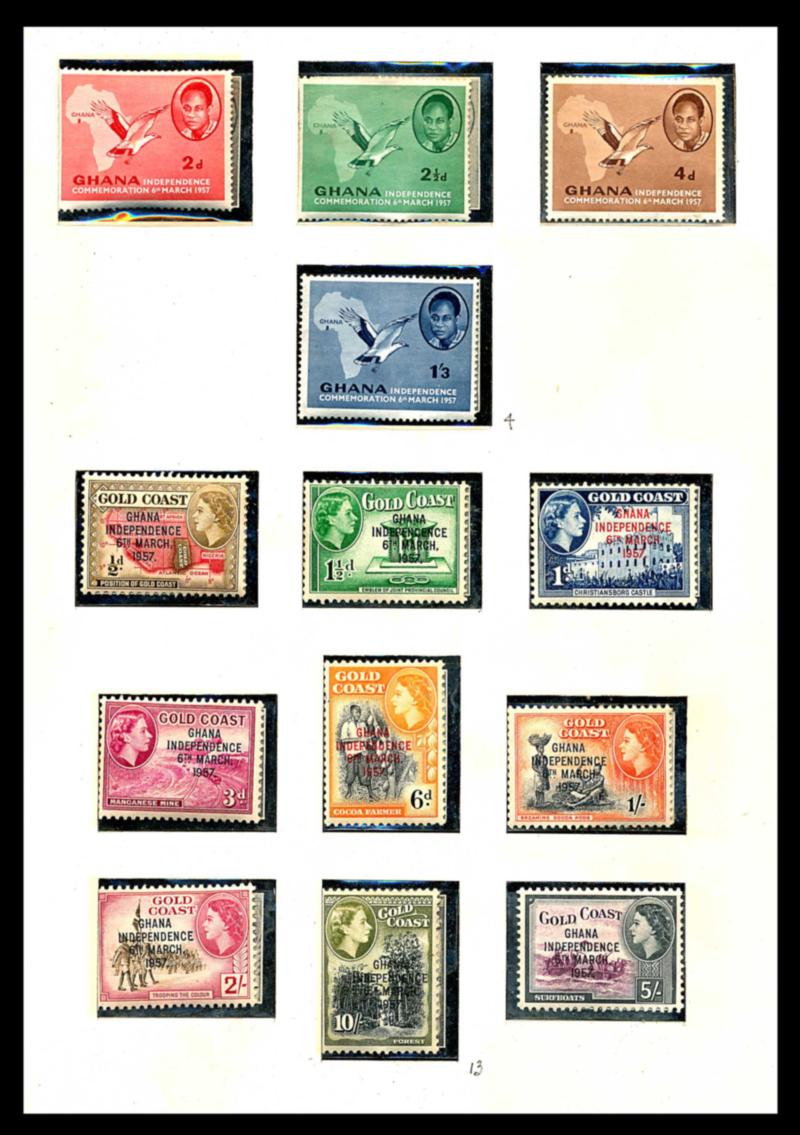 GHANA 1957-67 COLLECTION, STAMPS + S/S VF ** Binder containing a collection of 323 stamps and 26 souvenir sheets on Lindner hingeless album pages. Almost complete for the period. Starting bid $50.00. (Image1)