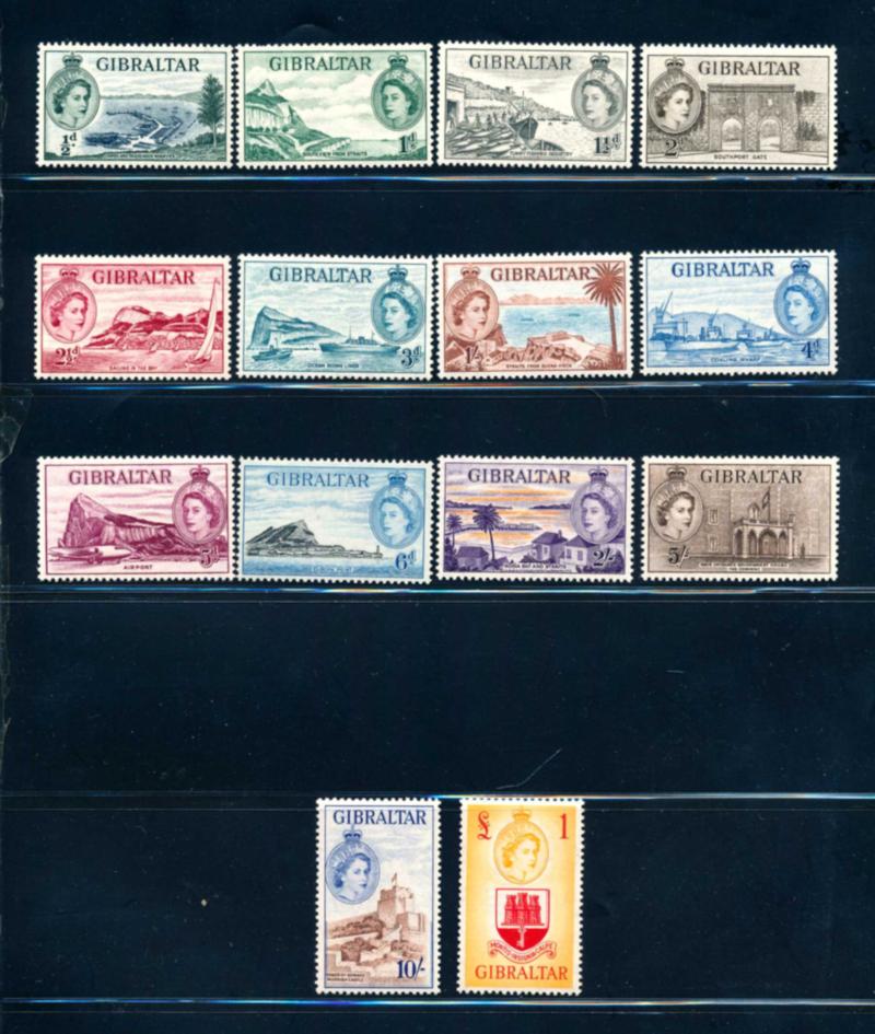 GIBRALTAR 1953 #132-45 SET, STAMPS VF **. Queen Elizabeth II issue, very nice complete set of 14 stamps mint never hinged. Scott $285.00 CAD. (Image1)