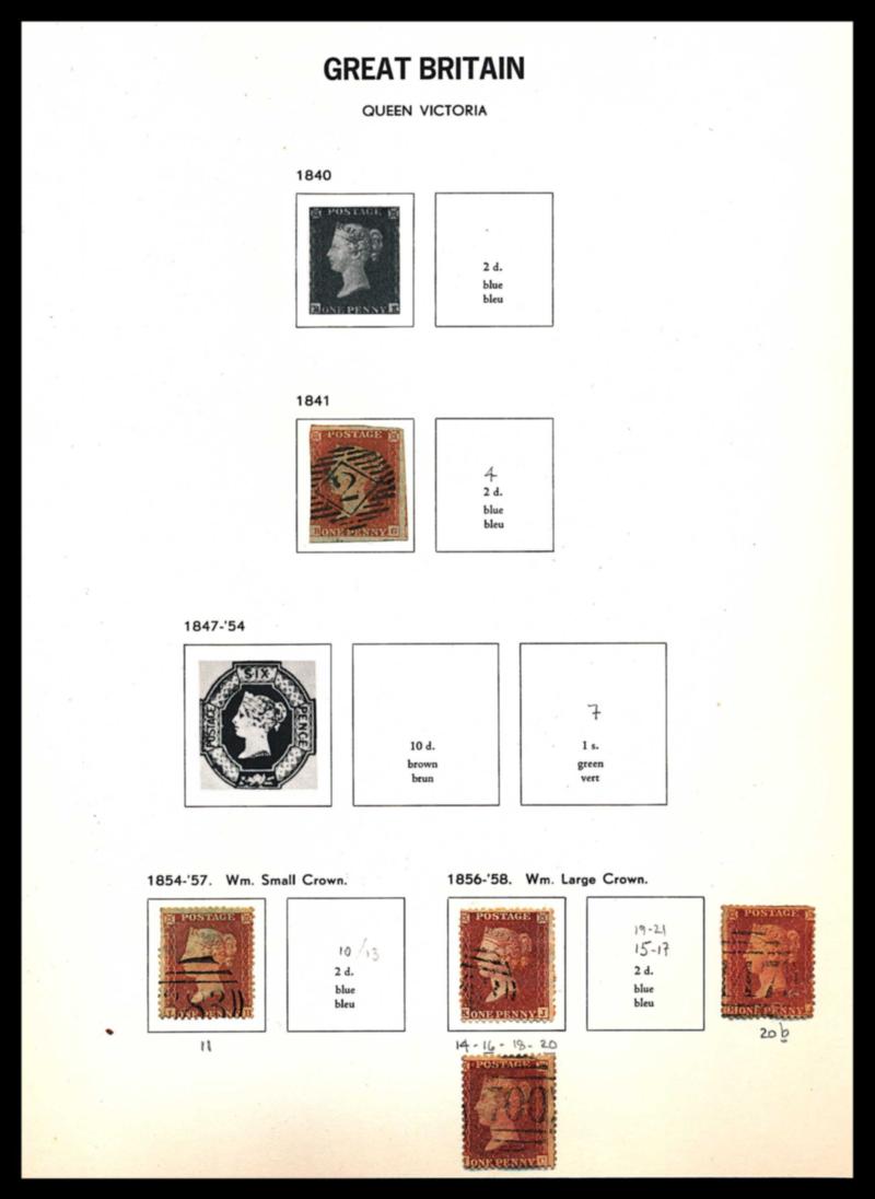 GREAT BRITAIN 1840-1972 COLLECTION,STAMPS VG-F */**/O. Binder containing collection of few hundred stamps mint and used. High catalog value but condition is mixed for the Queen Victoria stamps. Need to be checked !! Owner's catalog $6900.00 CAD. (Image1)
