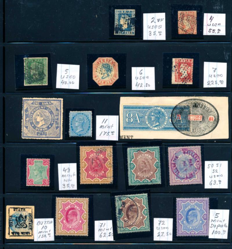 INDIA LOT STAMPS F-VF */**. Binder containing approximately 200 stamps mint and used. High catalog value according the owner. Need to be checked !! Starting bid $150.00. (Image1)