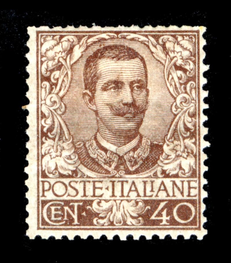 ITALY 1901 #83 STAMP F *. 40 centesimi King Victor Emmanuel III, high value of the set, the stamp is mint hinged. Scott $1050.00 CAD. (Image1)