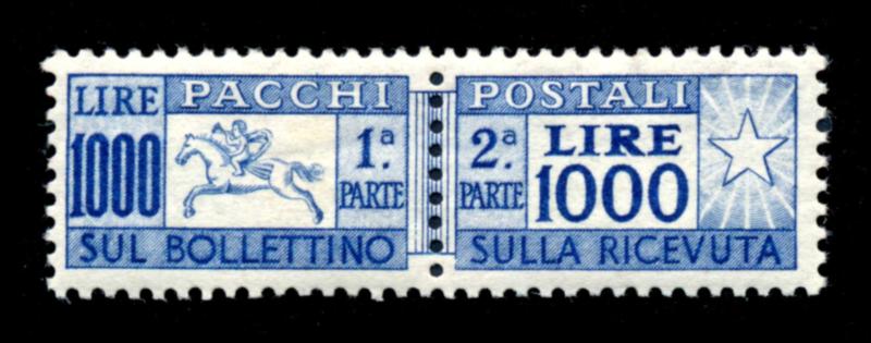 ITALY 1948 #Q75 PAIR STAMPS VF **. Parcel post issue, complete pair of the 1000 lire mint never hinged. Scott $2800.00 CAD. (Image1)