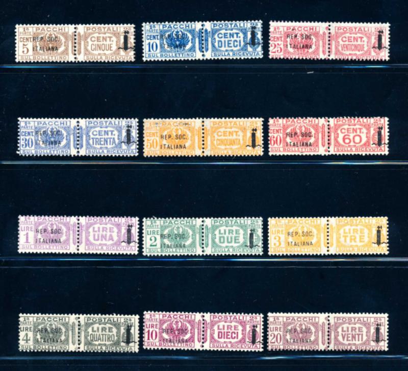 ITALY TRIESTE 1944 #Q1-12 SET, STAMPS VF **. Issued jointly by the Allied Government of the United States and Great Britain, complete set of Italian Parcel post stamps mint never hinged overprinted. Scott $1440.00 CAD. (Image1)