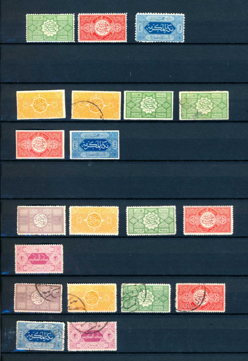SAUDI ARABIA 1916-57 COLLECTION, STAMPS F-VF */O. Stockbook containing 217 stamps mint and used from Hejaz, sherifate of Mecca, Kingdom of the Hejaz, Caliphate + Jedda and King Ali issues, Nejdi Administration of Hejaz and Kingdom of Saudi Arabia. Very interesting. lot for specialists of Saudi Arabia stamps. Starting bid $200.00. (Image1)