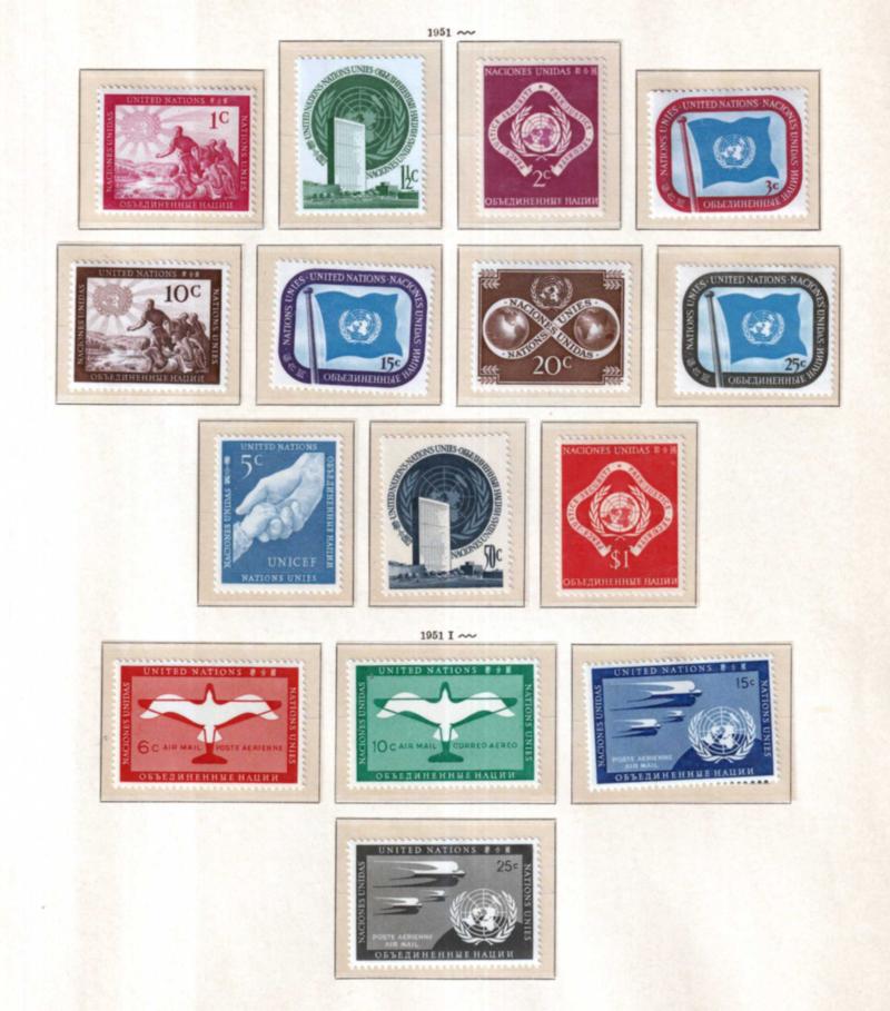 UNITED NATIONS 1951-75 COLLECTION, STAMPS VF **. Schaubek hingeless album containing a complete collection of New York and Geneva offices, with stamps and souvenir sheets mint never hinged including the S/S #38. Starting bid $100.00. (Image1)