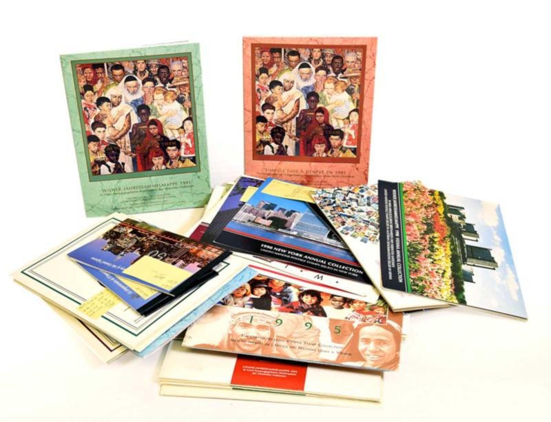 UNITED NATIONS LOT, STAMPS + S/S VF **. Box containing a nice selection of stamps, souvenir sheets, maxi-cards, booklets, topical and specialty collections. Few used stamps. Need to be examined. Scott $1490.00 CAD. (Image1)