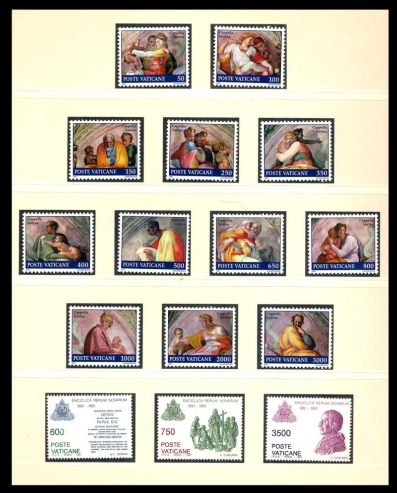 VATICAN 1991-2003 COLLECTION, STAMPS + S/S VF ** Lindner hingeless album with case containing a very nice and complete (missing 1 stamp) collection for the period of stamps and souvenir sheets mint never hinged (1 stamp used). Scott $1085.00 CAD. (Image1)
