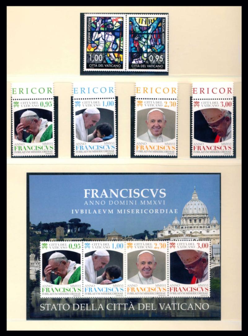 VATICAN 2016-20 COLLECTION, STAMPS + S/S VF **. Lindner hingeless album with case containing a very nice and complete collection for the period of stamps and souvenir sheets mint never hinged. Starting bid $140.00. (Image1)