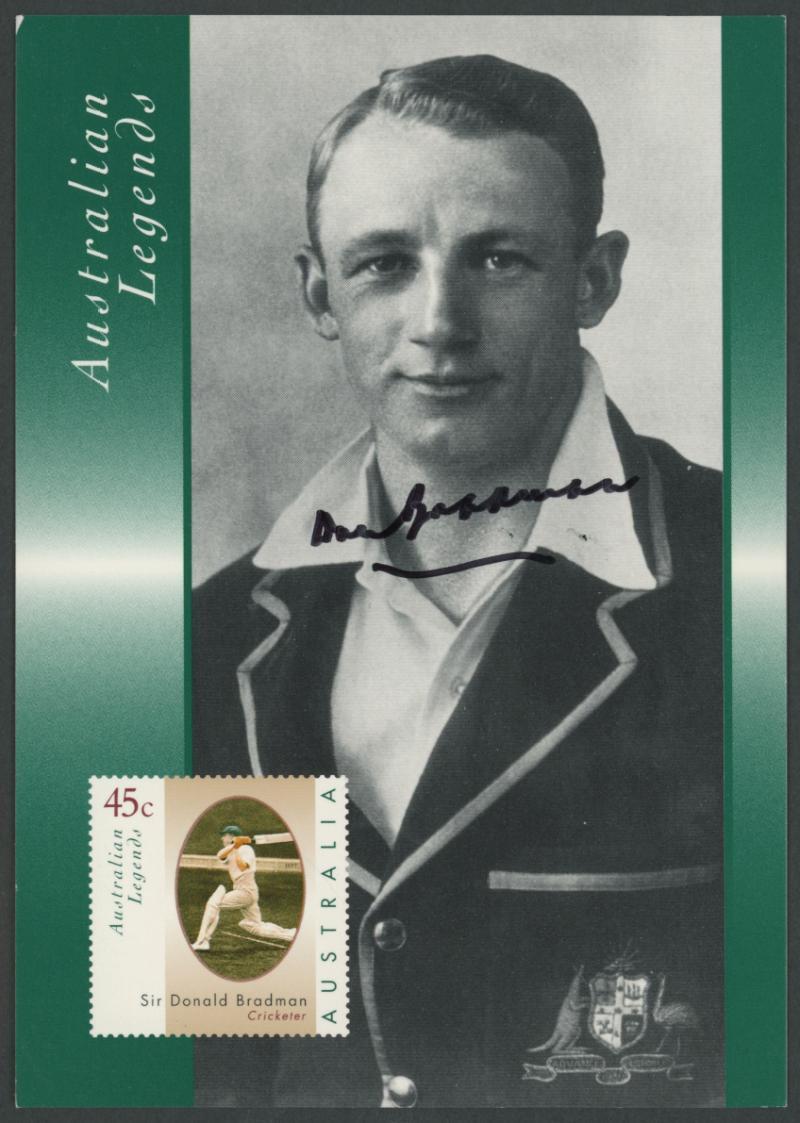 DON BRADMAN: 1997 Australia Post 'Australian Legends - Don Bradman' maxi-cards (6), with four signed by Don Bradman, Very Fine.