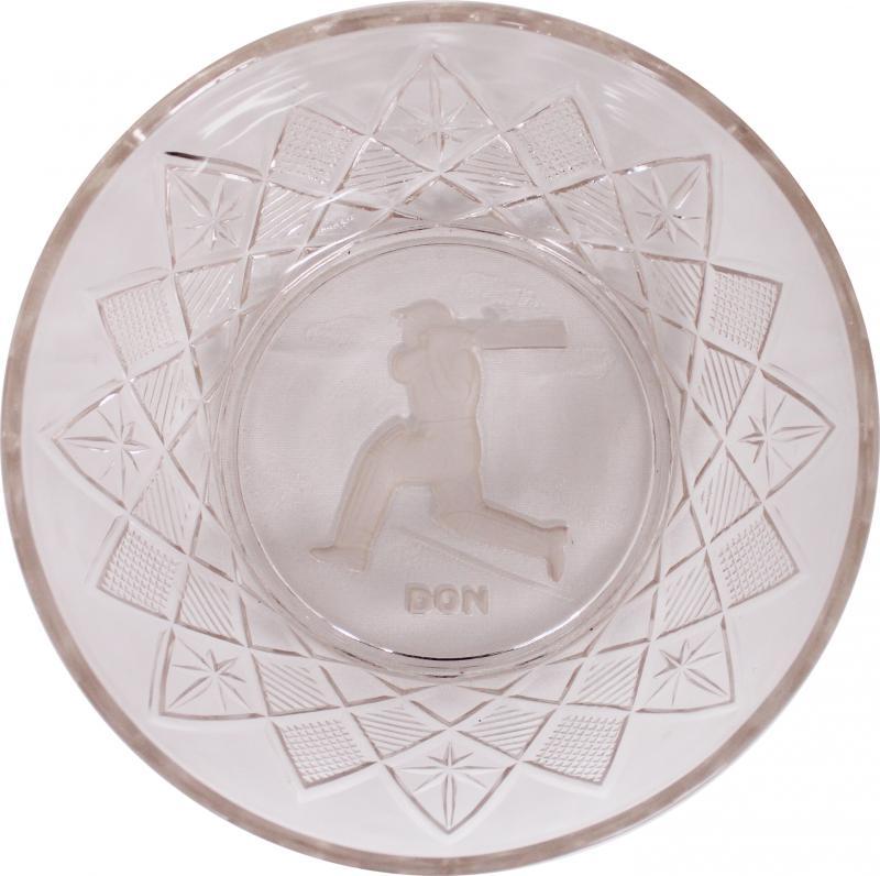 DON BRADMAN: 'DON' glass fruit bowl with attractive scene of Don Bradman batting impressed into base, circa 1930, Type 2 with small diamonds decoration around rim, Fine condition, rare. (Image1)