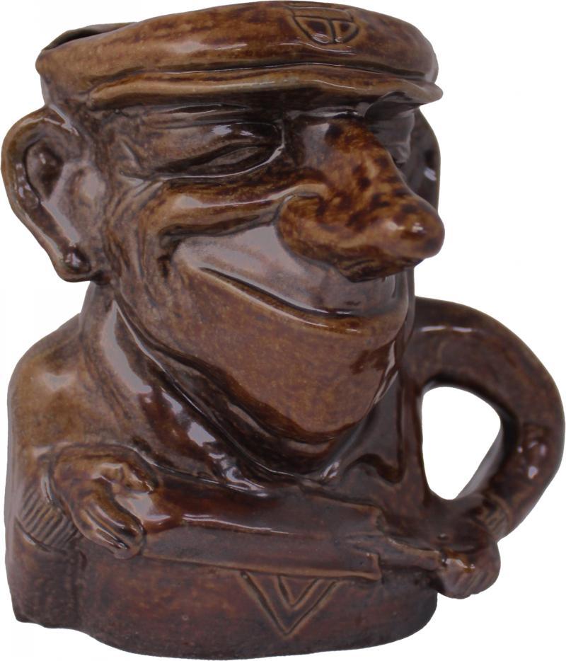 DON BRADMAN: Bendigo Pottery "Sir Donald Bradman" caricature jug, very attractive with brown glaze, 15cm high, Fine condition. (Image1)