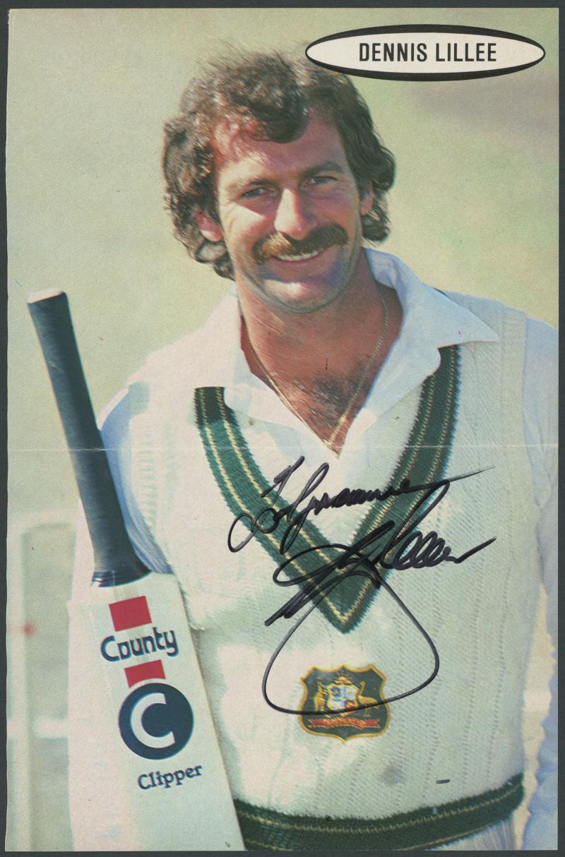 Autographs Signed cards (34), postcards (3), photographs (9) & pictures (27), including Dennis Lillee, Doug Walters, Graham McKenzie, Keith Stackpole, Greg Chappell, Mark Taylor & Jeff Thomson, mainly Fine/Very Fine.