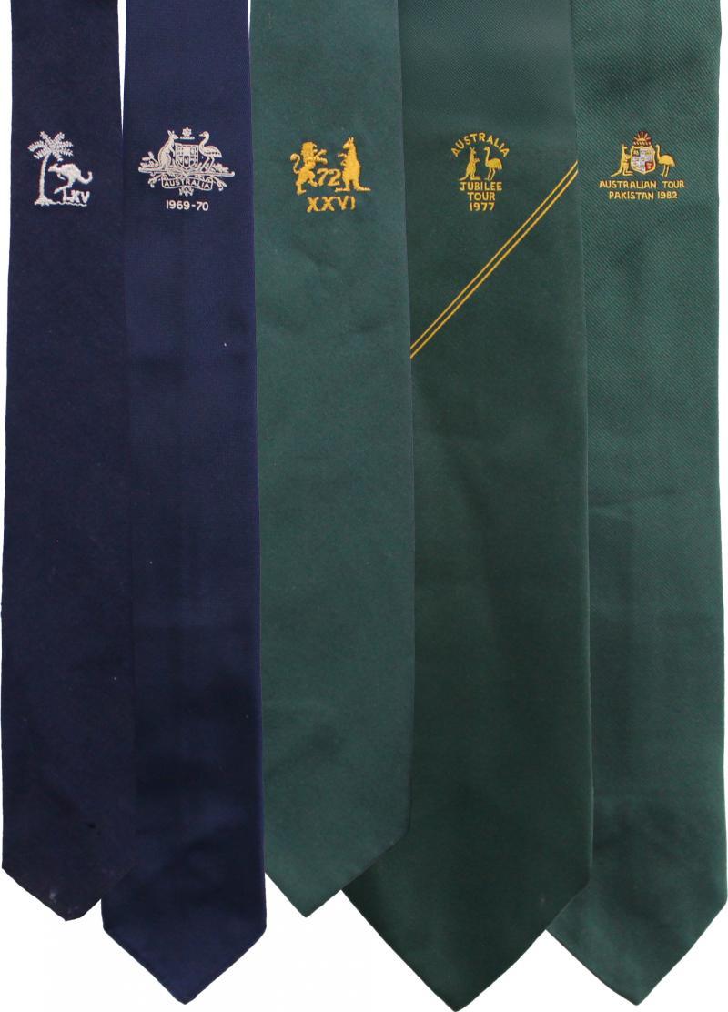 Clothing wonderful collection of Team Ties including undated (2), 1965 (2), 1969-70 (2 - green & blue), 1972, 1977 Jubilee Tour, 1981 to UK & Sri Lanka (2), 1982 to Pakistan (2), 1983, 1998 to Pakistan, Cricket Australia 2014-2015, mainly fine.