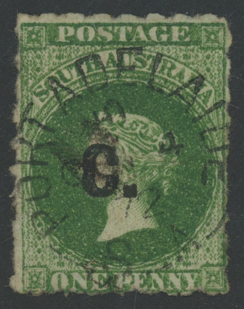 BLACK OVERPRINT: 'C.' on QV Perkins Bacon Large Star Wmk Rouletted 1d green SG DO75, rouletting on all sides, minor corner crease at upper-left, very fine 'PORT ADELAIDE/OC4/72/S A' cds, Cat £225; unpriced unused. Rated RR; unrecorded unused. Ex 'Sir Humphrey' (Brian Farmer): sold for $175 (Sale 118 Lot 310). Don Pearce's similar example sold for $360 (Sale 247 Lot 226). [Date range 4.10.1872 to 1.4.1875] (Image1)