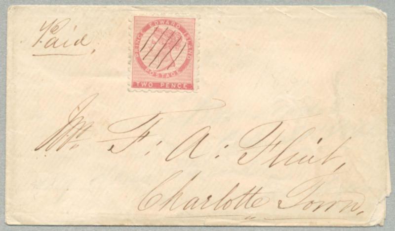 1861, 2d, rose, Die I, on cover with partial letter from NEW LONDON/ST. EDWARD ISLAND to CHARLOTTE TOWN, cancelled with characteristic 5 line pen cancel, dated 31 Oct 1861, reverse with arrival ST. EDWARD ISLAND 1. NOV. 1861, cert. Green, interesting and desirable, VF-XF! Schätzpreis 1.000€. (Image)