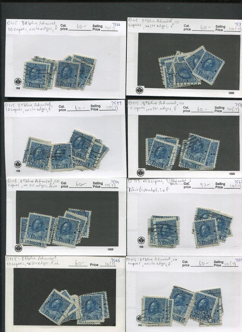 Canada 1911-1925, #115 8c blue, a used group of approx 85 in 102s, Unitrade value $517 CDN, ($377 USD), appears fine (Image)