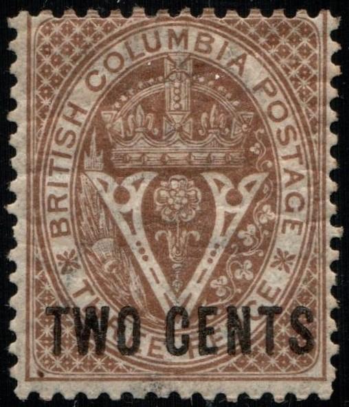 British Columbia Canada 1868 QV 2c On 3c SG28. MiNr: 7 (overprint) hinged. vf (Image)