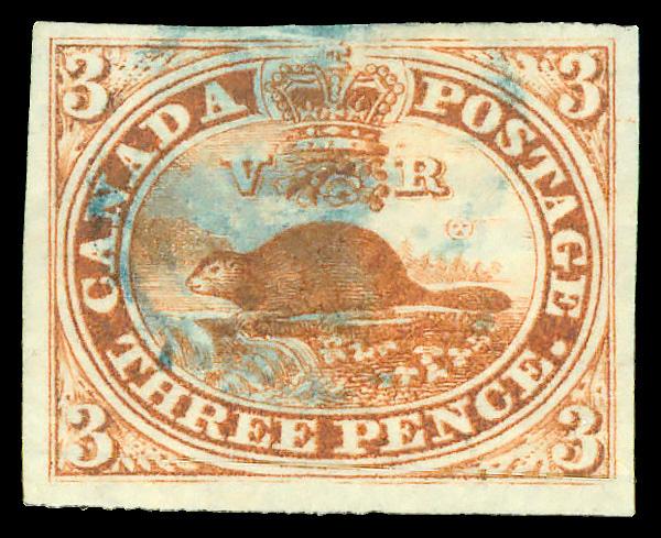 1852, Beaver, 3d red (Scott 4), light blue cancel, Very Fine to Extremely Fine. Scott $225. (Image)