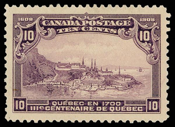 1908, 10¢ Quebec (Scott 101), o.g., hinge remnant, exceptionally well centered, Extremely Fine to Superb, with 2017 P.S.E. certificate graded XF-SUP 95. Scott $200. (Image)