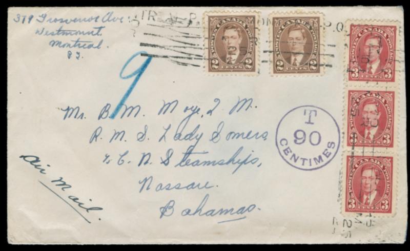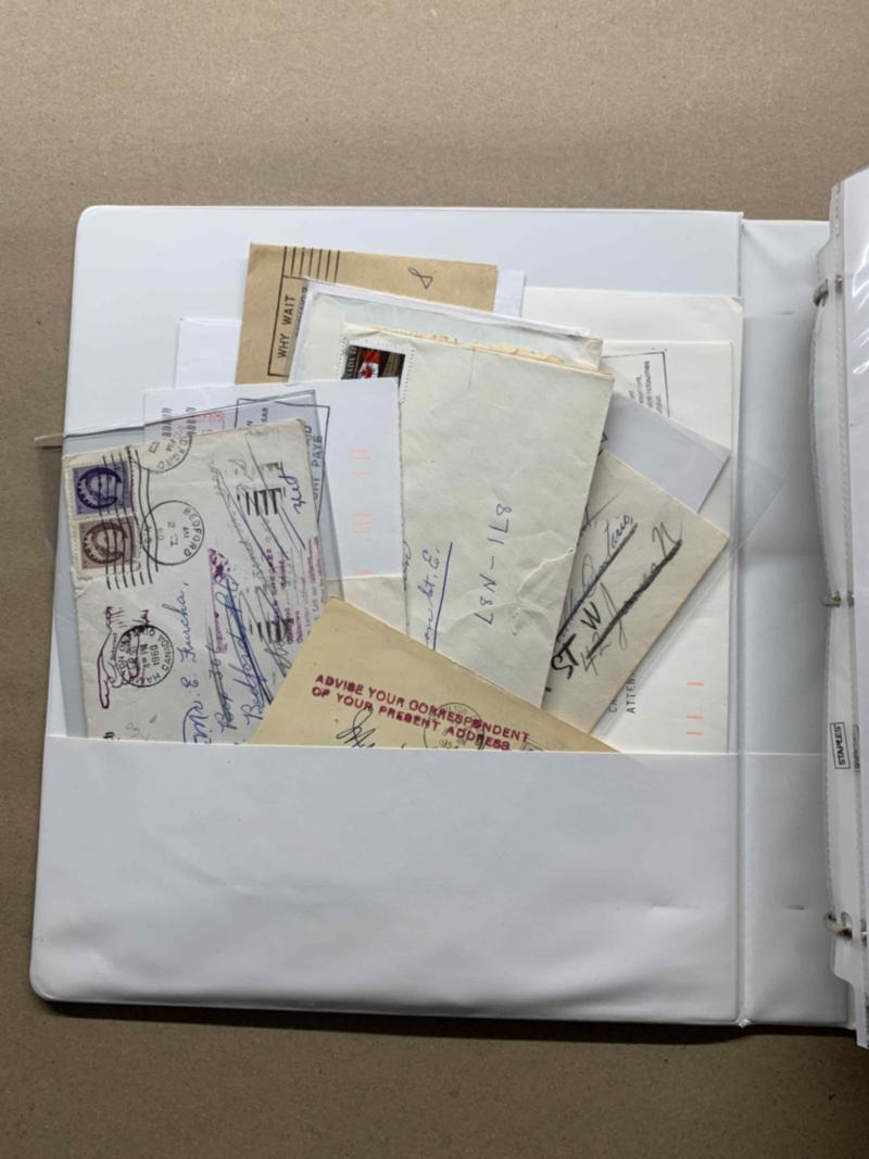 1937-1945 Mufti issue cover album, 104 covers/cards incl. 1940 shortpaid to Bahamas, T90c, 1941 shortpaid airmail to Ecuador, 1940 censored to China, 1938 airmail to Colombia, plus others such as Special Delivery, OHMS perfin, 2¢ bisect, advertising etc. Inspect. All images shown available as PDF. Click here for PDF.(Image)
