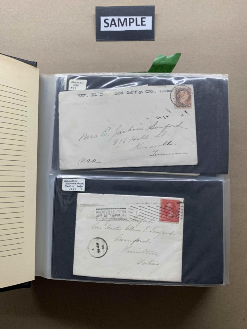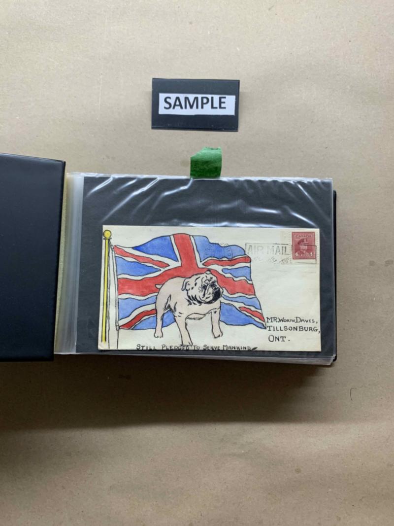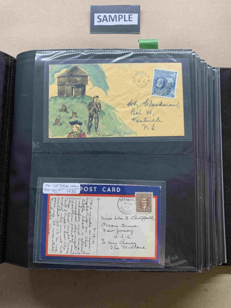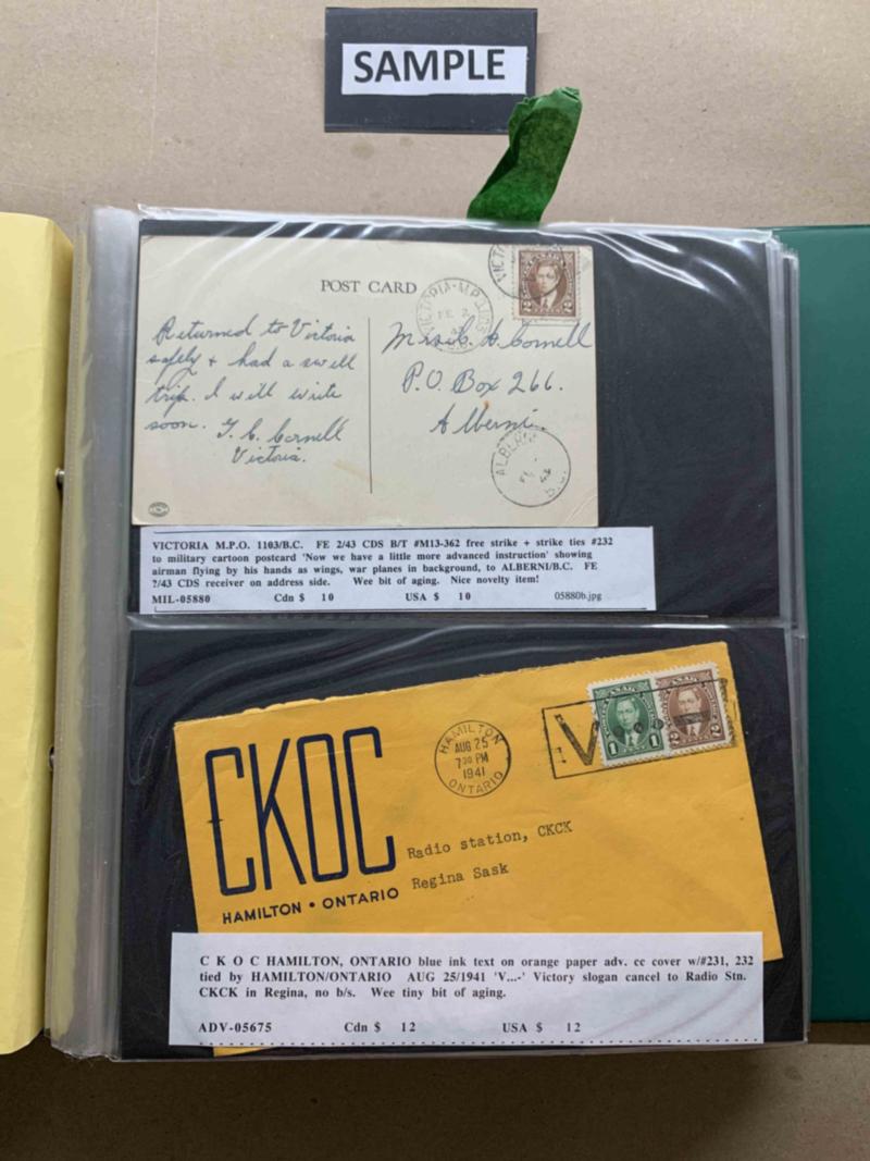Cover album with approximately 100 covers/cards, heavily skewed towards Hamilton, Ont (lots of Small Queens), but non-Hamilton and some event/FDCs. All images shown available as PDF. Click here for PDF.(Image)