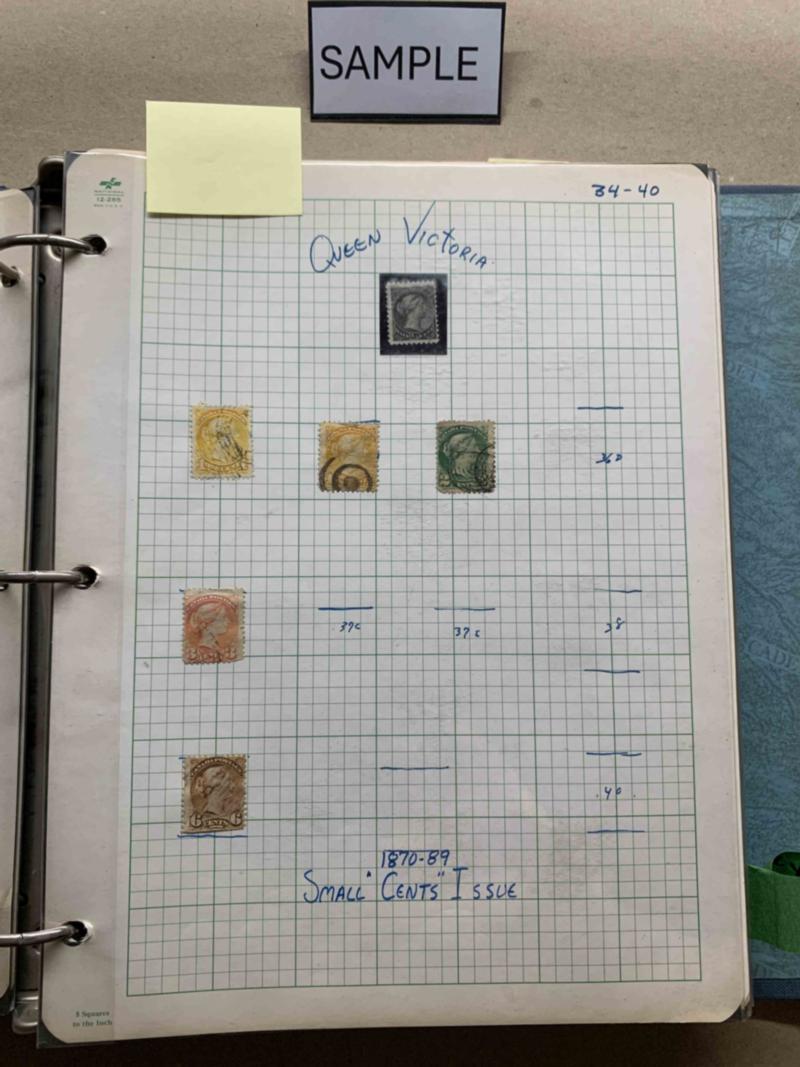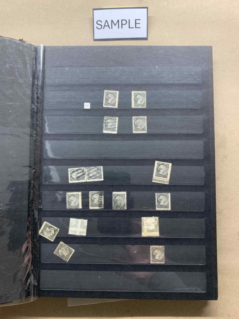 Small Queen horde in stock book, mint and used incl. 1/2¢(16), 1¢ (115), 2¢(89), 3¢(217), 5¢(35), 6¢(23), 8¢(31), and 10¢(15, incl. one mint, og). Plus a page of odd misc. Not all images shown. See more images in PDF. Click here for PDF.(Image)