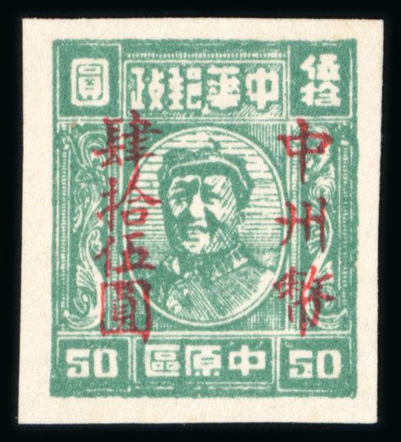 1948 Central China, Yu-Si (West Honan Liberated Area), Yang CC41-46, CC41a, CC42a, complete set with three rare imperf. stamps. Fine unused, no gum. (Image)