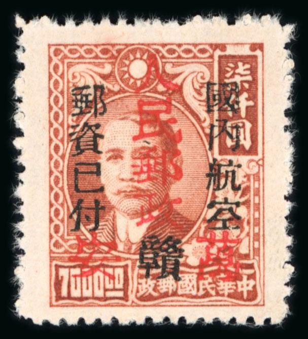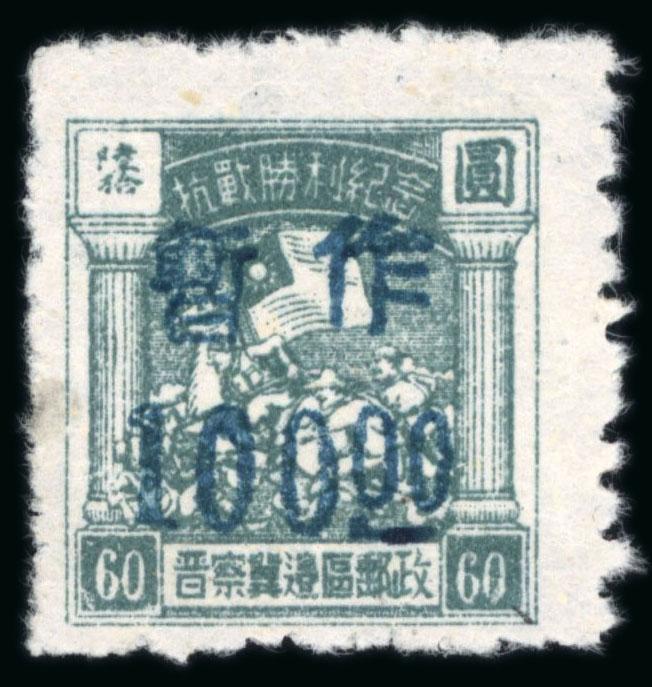 Suiyuan-Inner Mongolia Border Area: 1949 $2 on $3'000, $5 on $5'000 and $10 on $10'000, unused (no gum), very fine. (Image)
