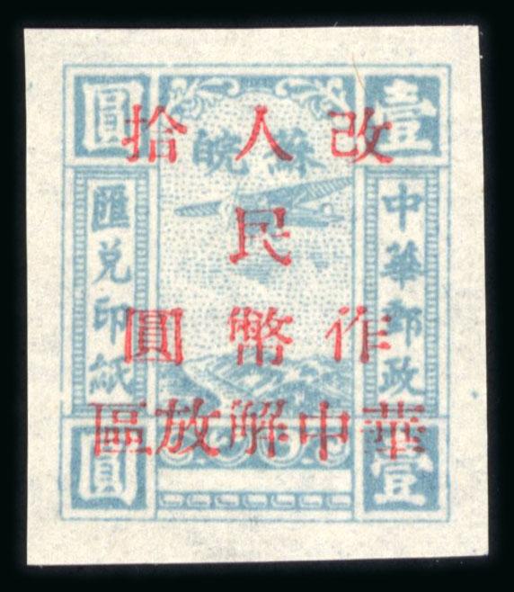 1945 East China 10c green (lightly blue shade) imperf., unused without gum as issued, very fine and fresh. (Image)