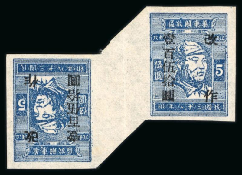 1949 East China North Anhui Area, selection on stock card, SG EC312-EC314, with 4 tête-bêche pairs. Two used copies of EC312, the rest is unused without gum as issued. (Image)