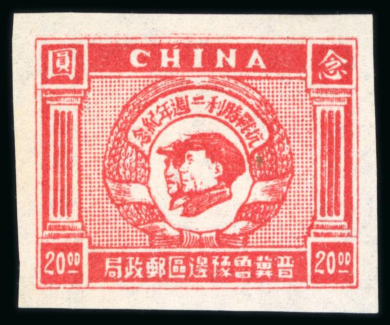 1946 North China, Shanxi-Hebei-Shandong-Henan Border Area, SG NC90a-95a, 10 imperf. stamps with colour shades, unused, no gum; a very fresh set. (Image)