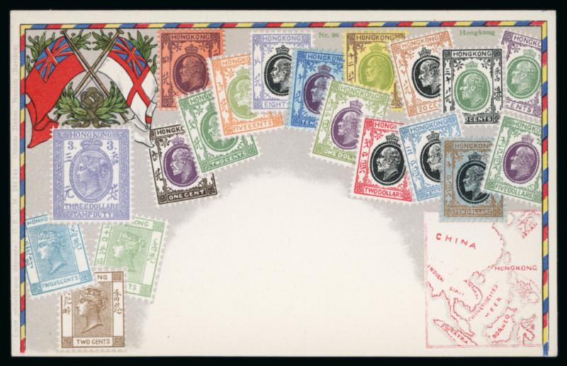 1900-1960 Attractive group of 65 postcards of China, showing incoming cards related to China with large part from Sweden incl. some interesting cards sent to Sweden 1950/60´s and 1908 Coiling Dragon, also cards with Hong Kong issues cancelled Shanghai J.P.O, mixed to fine (65). (Image)