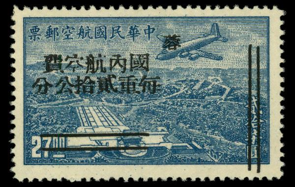 1949, $10,000 on $27 DC-4 over Mausoleum, surcharged (Scott C2b), without gum as issued, Fine to Very Fine. Scott $125. (Image)