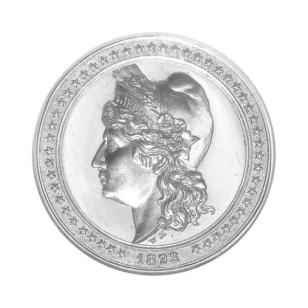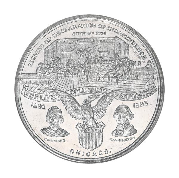 1892-93, Christopher Columbus World's Columbian Exposition E-55, 50.5 mm; in fine to very fine condition with only slight signs of wear, Fine to Very Fine. (Image)