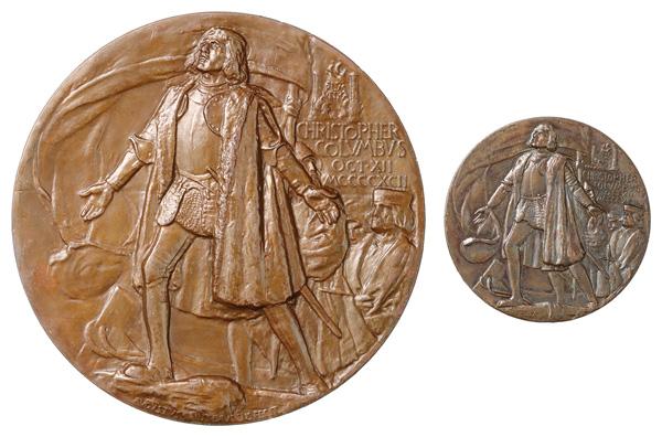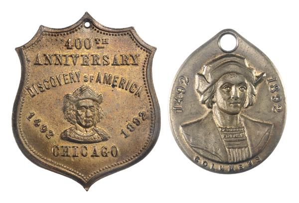 Pair of 1892-93 Columbian Exposition Christopher Columbus Medals, a very attractive and fine pair of medals, both depicting Christopher Columbus in celebration of the Columbian Exposition; both appears to be made of brass or bronze (2). (Image)
