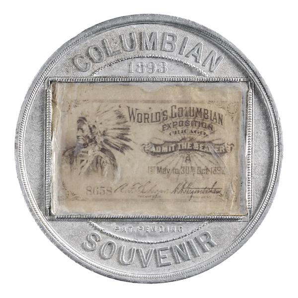 1893 Columbian Exposition Encased Ticket Souvenir Medal, in very good condition, Very Good. (Image)