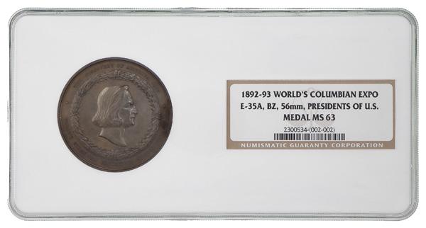 1892-93 Columbian Exposition Presidents of the United States, Bronzed, E-35A, NGC MS63, NGC graded Mint State 63. (Image)