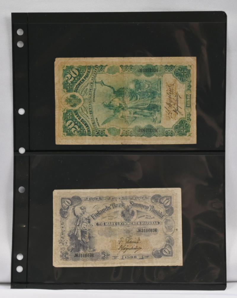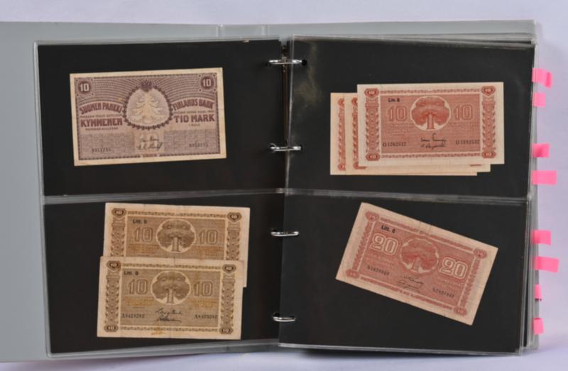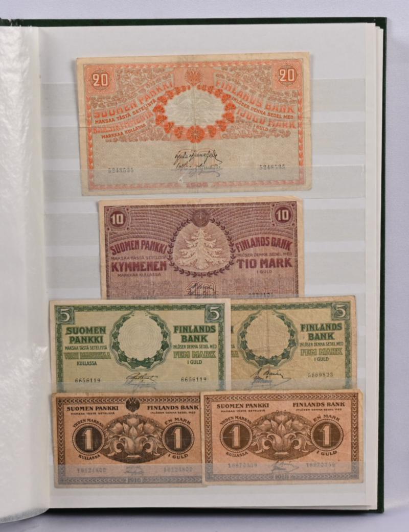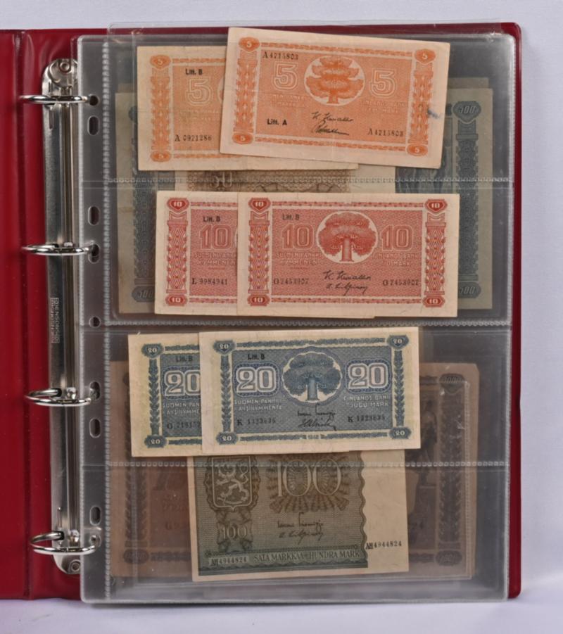 Fine selection of banknotes, over 30 pieces in album, eg. 1922 500 markka and 1000 markka, 1986 500 markka and 1000 markka (Image)