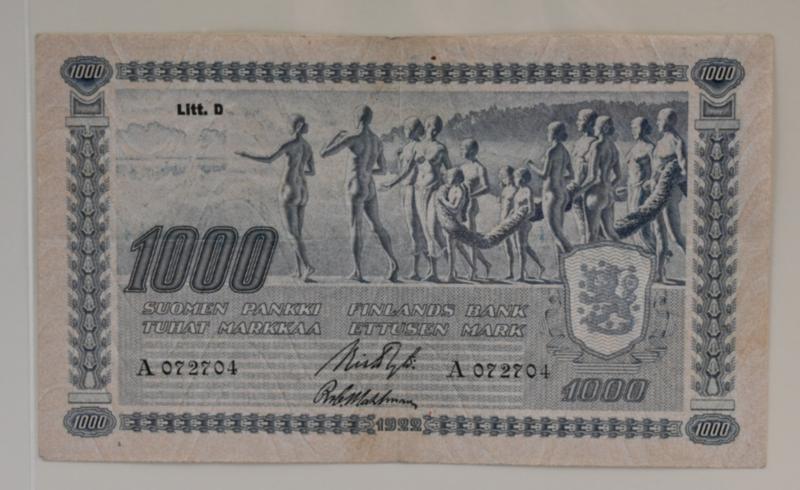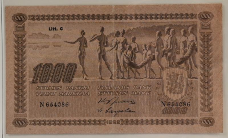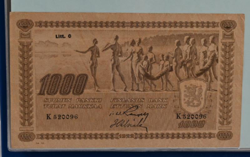 1922 1000 markka Litt. C, type III, kl 1 (Image)