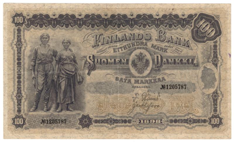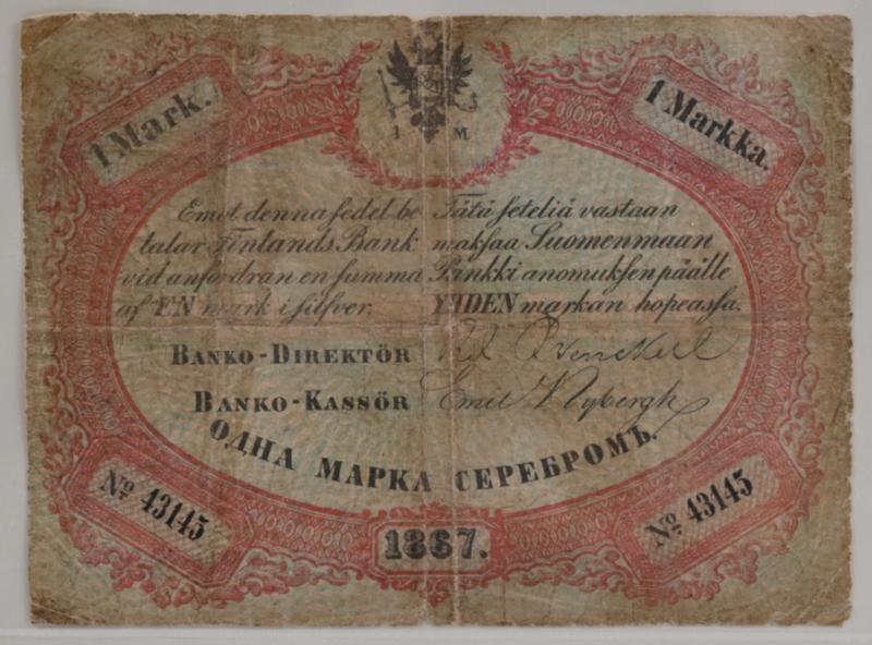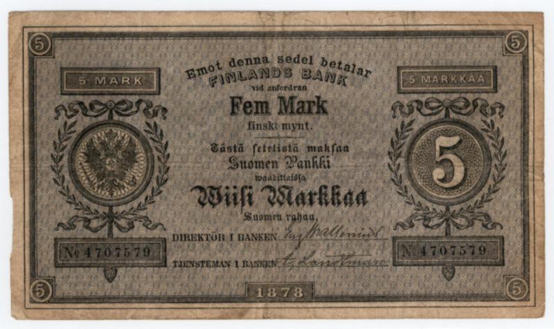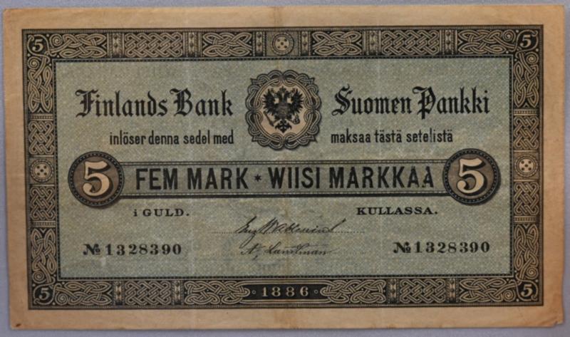 1886 5 markka, kl 1, left bottom corner with small fault (Image)