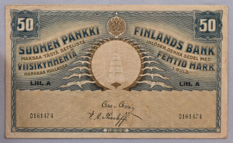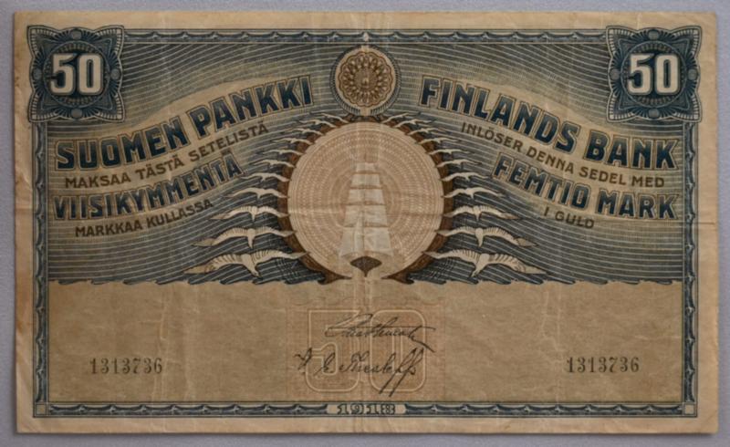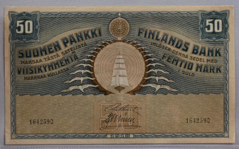 1918 50 markka, kl 1, corner with some surface faults (Image)