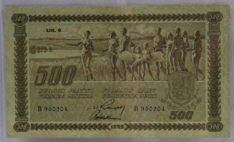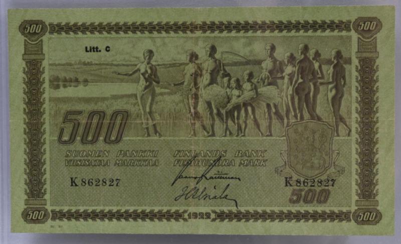 1922 500 markka Litt. C, type I, kl 1/1? (Image)
