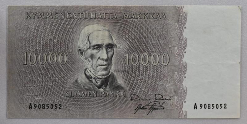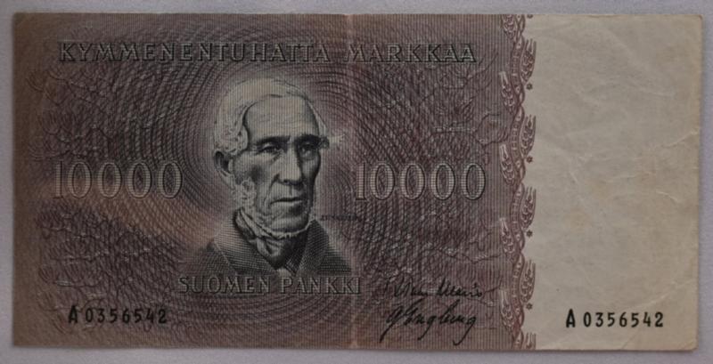 1955 10 000 markka, inverted watermark, kl 1 (Image)