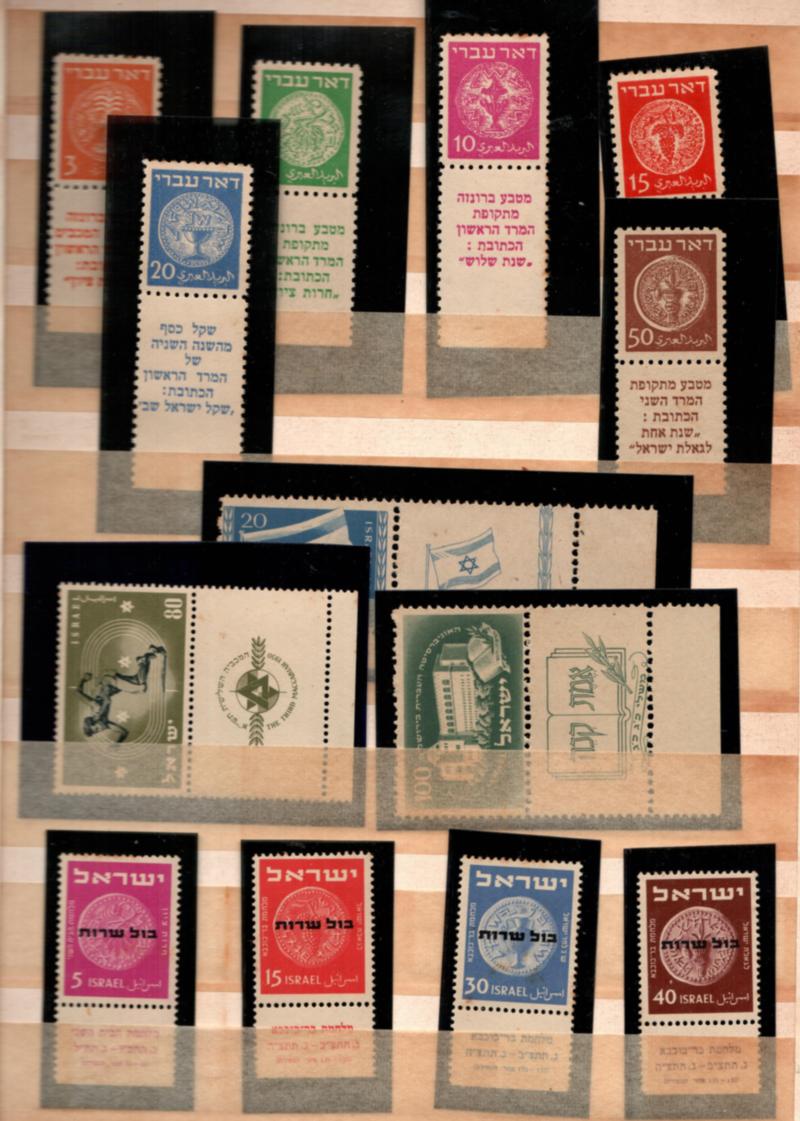 1948-1977 Israel stamp collection organized in 5 albums. Includes Doar Ivri 1-6 w/tab gum MNH, Flag, University w/t, include some stamps W/ tropical gum. Maccabiah, T-A, JNF, TABA, WEIZMANN. From 1960 -1977 all stamps MNH. include 1 album from 1948-1977 without tabs w/g. mix con. (Image)