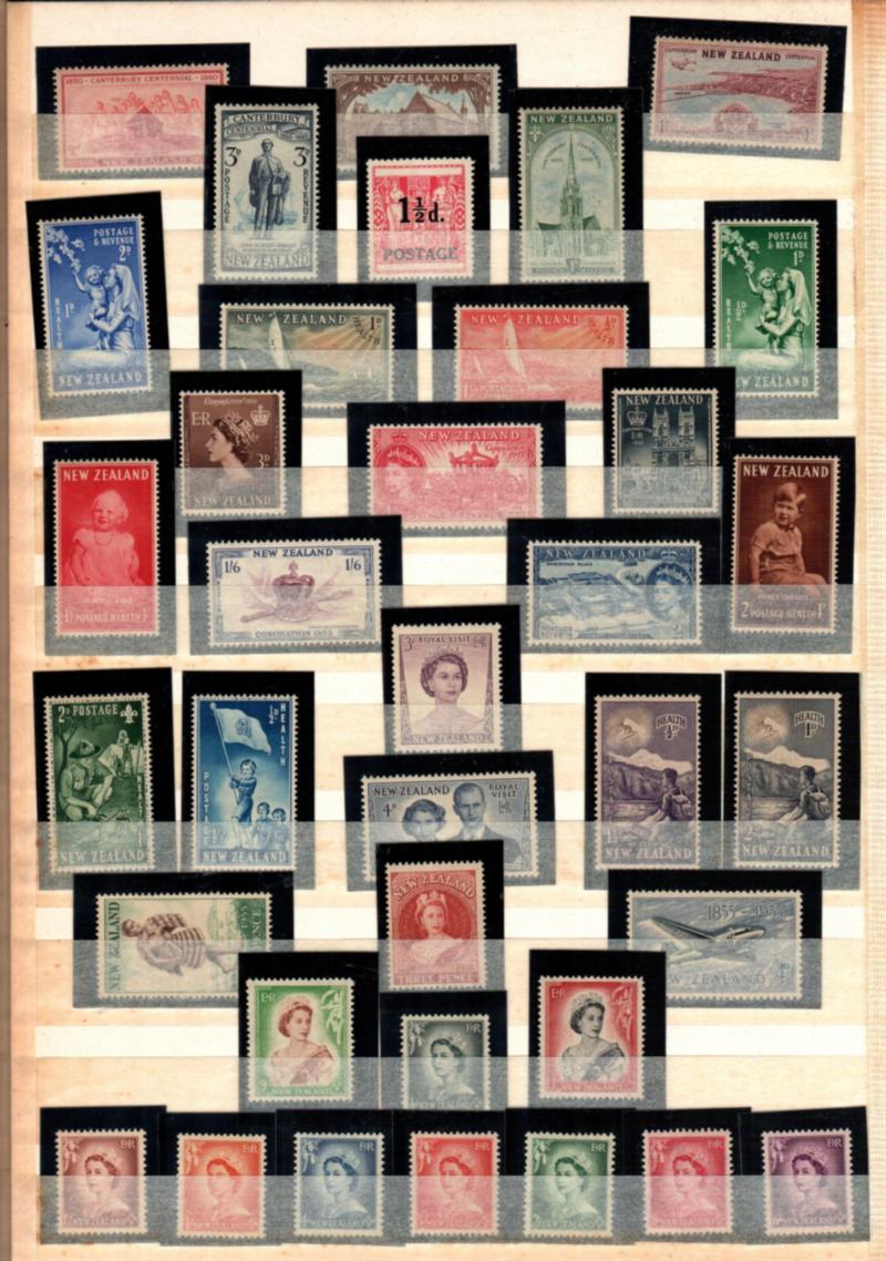 A collection mounted in a pad of album pages with good stamps, NEW ZEALAND 1930-1979, including Small blocks of 6 stamps (Thematic birds) mine sheets as souvenir pages, including probably MNH, and in excellent quality. The catalog value is EUR 850++, a low start! Organized in Havid in the album (different stamps per page), . very good collection. (Image)