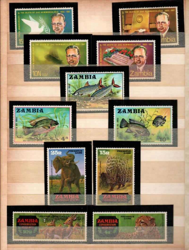 Collection mounted in album page pad with good stamps, GUYANA & UNITED NATIONS. AND NEW ZEALAND Souvenir sets and pages that probably include MNH and are of excellent quality. The catalog value is 400+ euros, a low start! Organized in Havid on leaves (various stamps per page),. (Image)