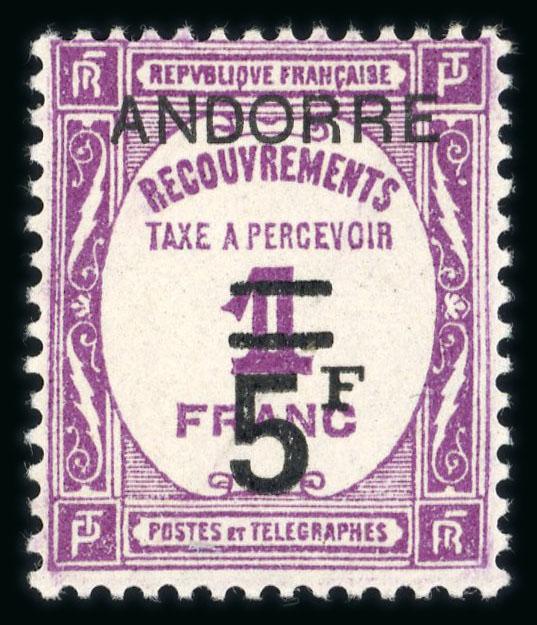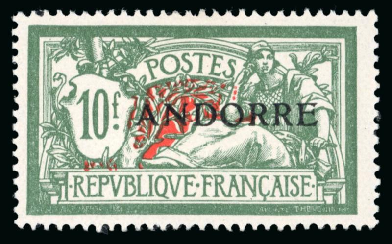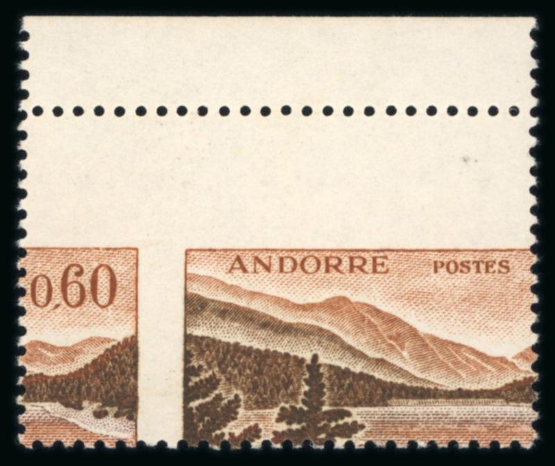 1961, Andorre Y&T n°161A, variété de piquage à cheval sur 2 exemplaires neufs ** (paire détachée), peu courant de manière aussi marquée, superbe. (Image)